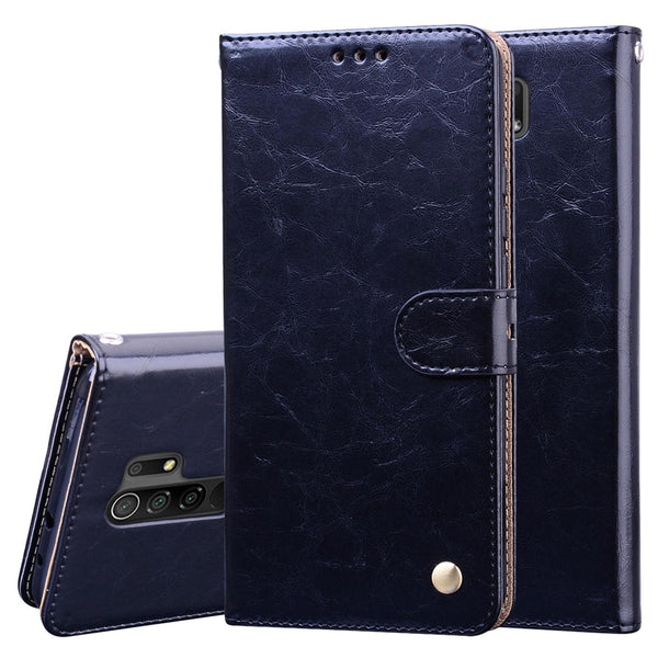 For Xiaomi Redmi 9 Business Style Oil Wax Texture Horizontal Flip Leather Case, with Holder & Card Slots & Wallet(Black)