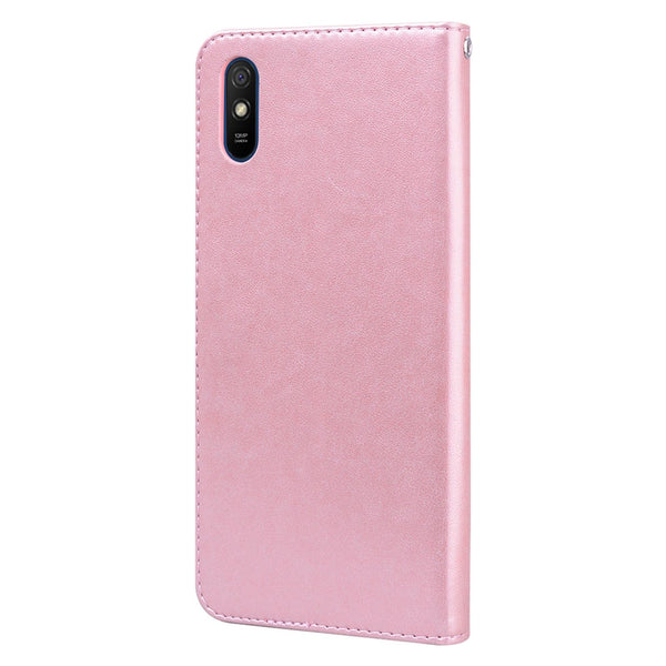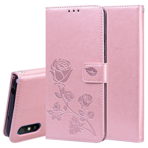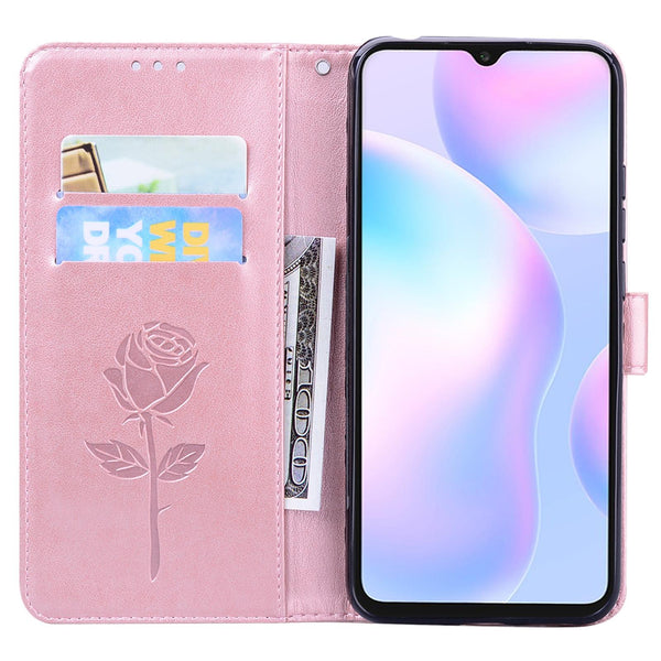 For Xiaomi Redmi 9A Rose Embossed Horizontal Flip PU Leather Case with Holder & Card Slots & Wallet(Rose Gold)