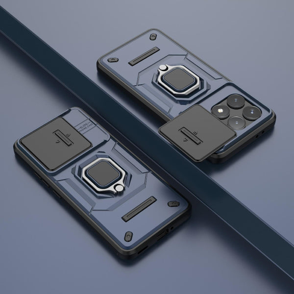 For Xiaomi Redmi K70 5G Sliding Camshield TPU + PC Shockproof Phone Case with Holder(Blue)