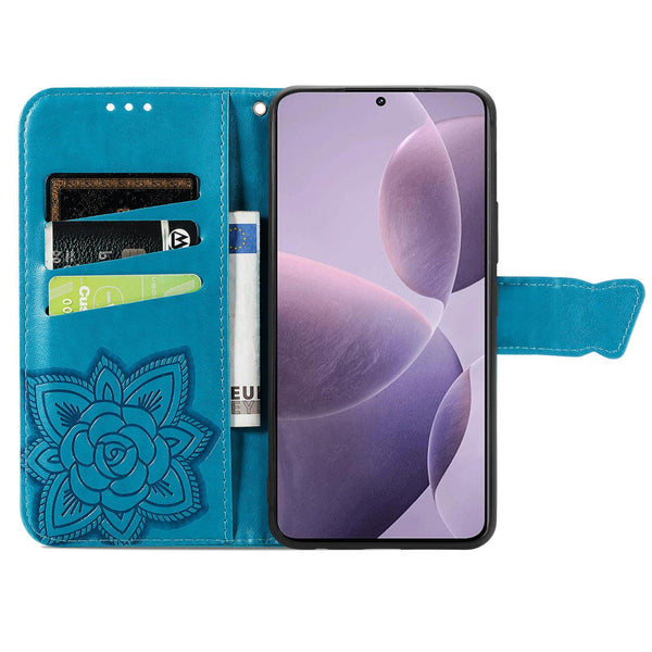 For Xiaomi Redmi K70 Butterfly Love Flower Embossed Leather Phone Case(Blue)