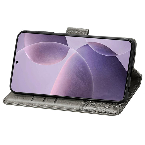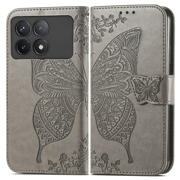 For Xiaomi Redmi K70 Butterfly Love Flower Embossed Leather Phone Case(Grey)