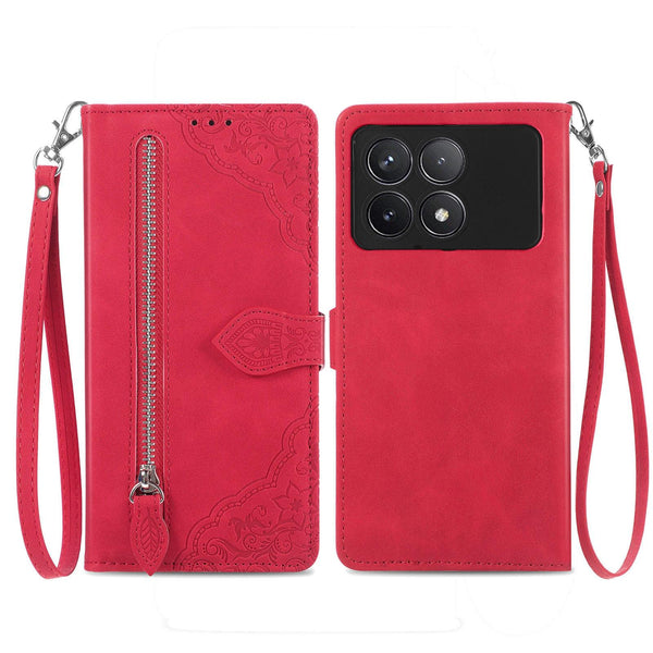 For Xiaomi Redmi K70 Embossed Flower Zipper Leather Phone Case(Red)