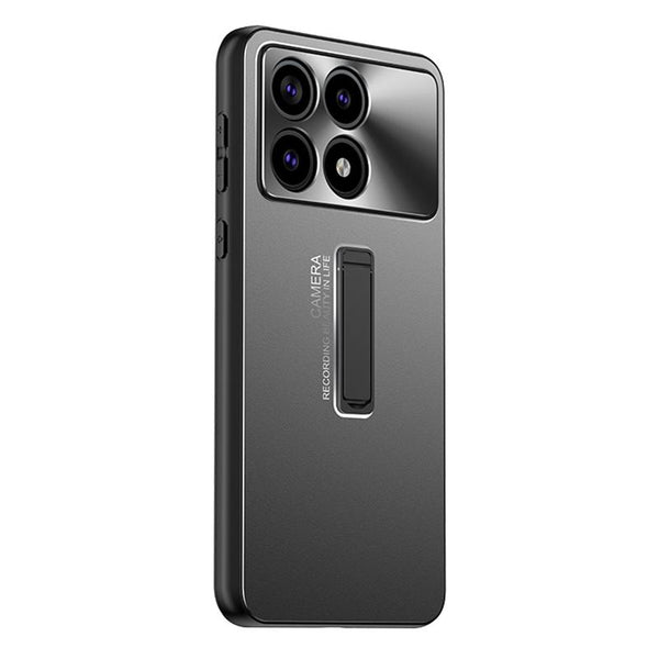 For Xiaomi Redmi K70 Frosted Metal Hybrid TPU Holder Phone Case(Black)