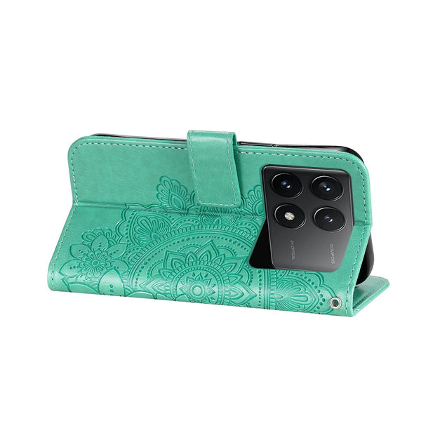 For Xiaomi Redmi K70 / K70 Pro 7-petal Flowers Embossing Leather Phone Case(Green)