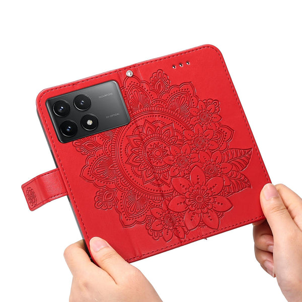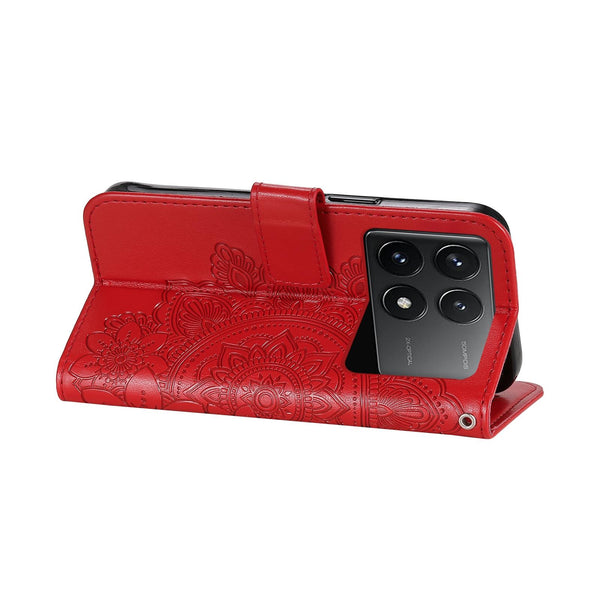 For Xiaomi Redmi K70 / K70 Pro 7-petal Flowers Embossing Leather Phone Case(Red)