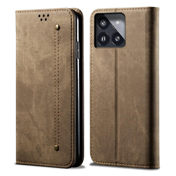 For Xiaomi Redmi K70/K70 Pro Denim Texture Casual Style Horizontal Flip Leather Case(Khaki)