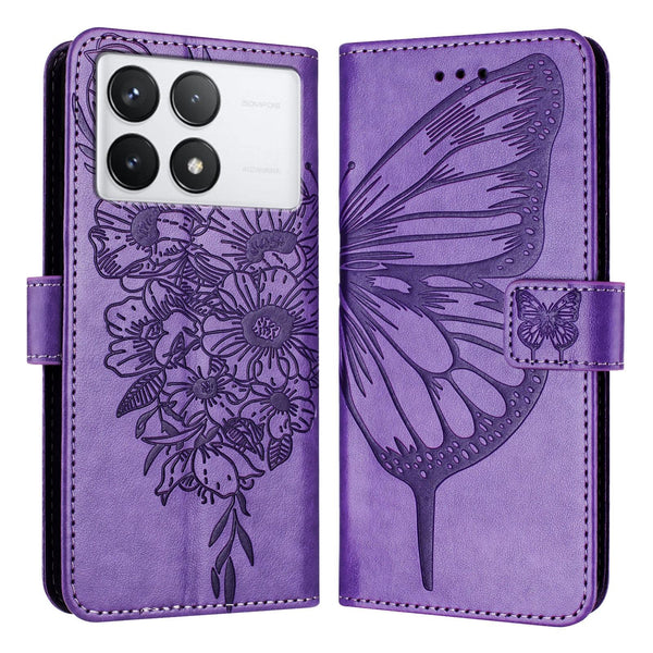 For Xiaomi Redmi K70 / K70 Pro Embossed Butterfly Leather Phone Case(Purple)