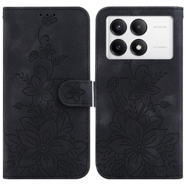For Xiaomi Redmi K70 / K70 Pro Lily Embossed Leather Phone Case(Black)