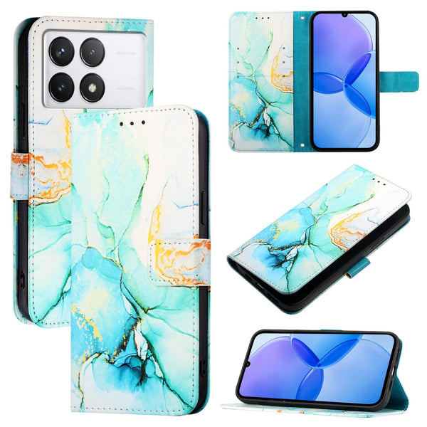 For Xiaomi Redmi K70 / K70 Pro PT003 Marble Pattern Flip Leather Phone Case(Green)