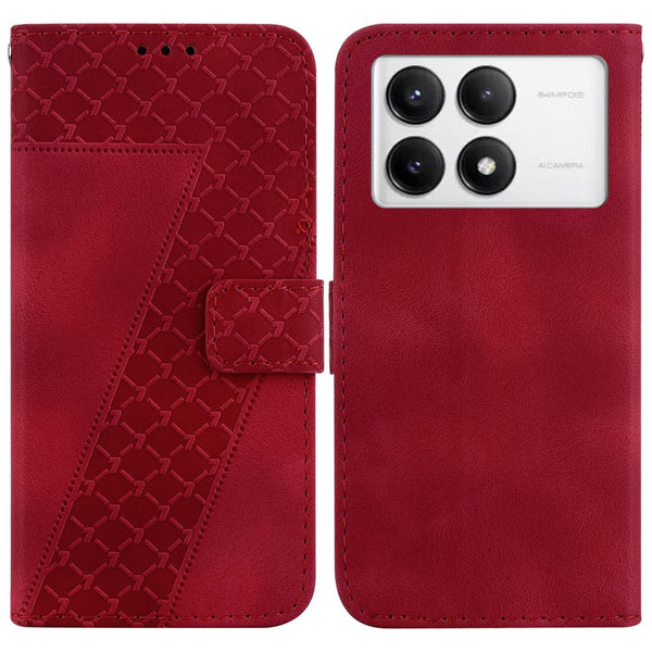 For Xiaomi Redmi K70 / K70 Pro Seven-shaped Embossed Leather Phone Case(Red)