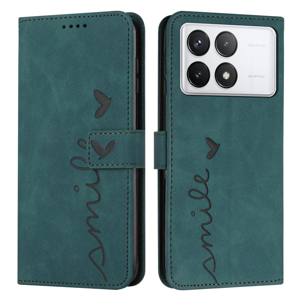 For Xiaomi Redmi K70 / K70 Pro Skin Feel Heart Embossed Leather Phone Case with Long Lanyard(Green)