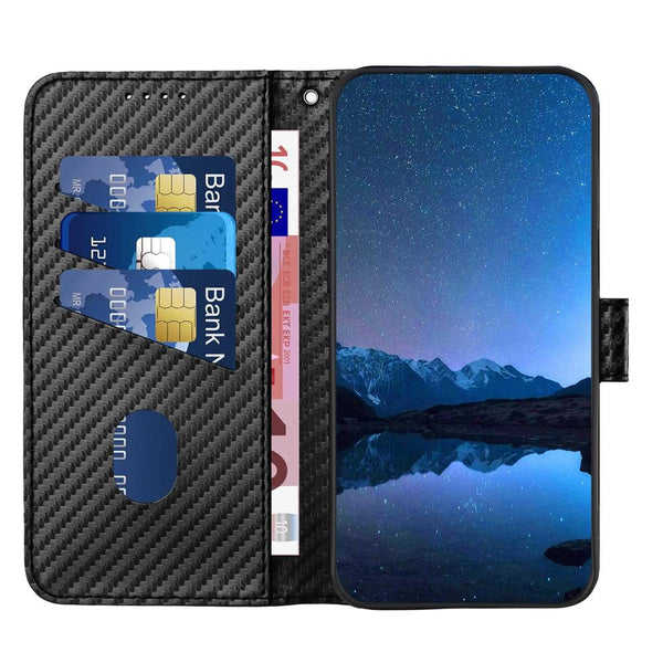 For Xiaomi Redmi K70 / K70 Pro YX0070 Carbon Fiber Buckle Leather Phone Case with Lanyard(Black)