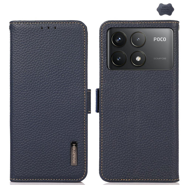 For Xiaomi Redmi K70 KHAZNEH Side-Magnetic Litchi Genuine Leather RFID Phone Case(Blue)