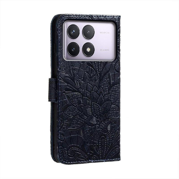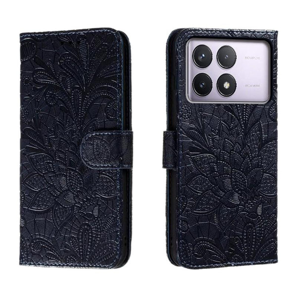 For Xiaomi Redmi K70 Lace Flower Embossing Flip Leather Phone Case(Dark Blue)