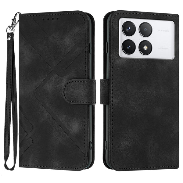 For Xiaomi Redmi K70 Line Pattern Skin Feel Leather Phone Case(Black)
