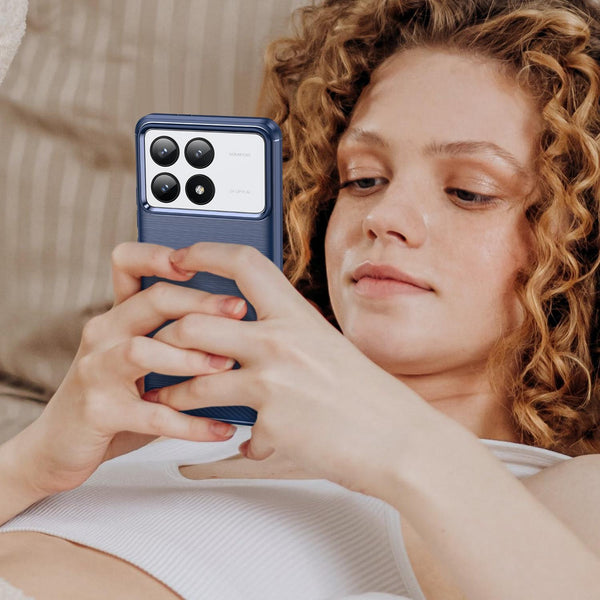 For Xiaomi Redmi K70 Pro Brushed Texture Carbon Fiber TPU Phone Case(Blue)