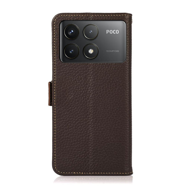 For Xiaomi Redmi K70 Pro KHAZNEH Side-Magnetic Litchi Genuine Leather RFID Phone Case(Brown)