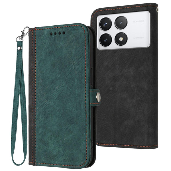 For Xiaomi Redmi K70 Side Buckle Double Fold Hand Strap Leather Phone Case(Dark Green)