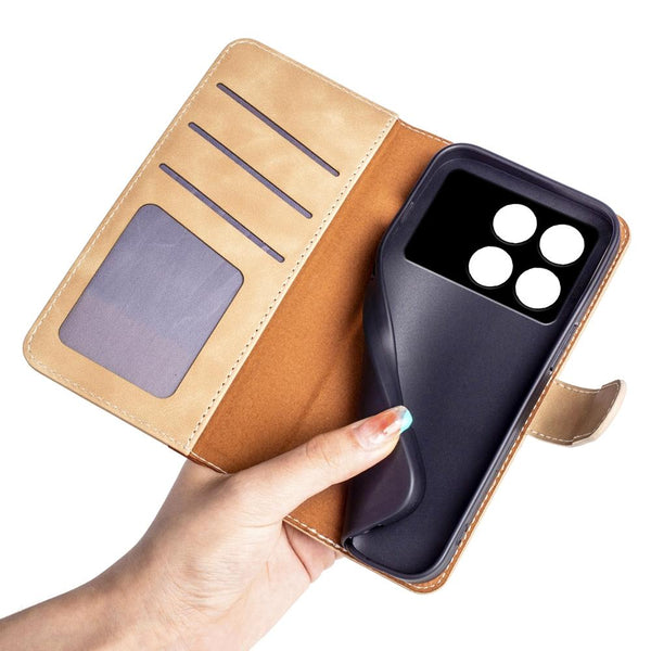 For Xiaomi Redmi K70 Stitching Horizontal Flip Leather Phone Case(Yellow)