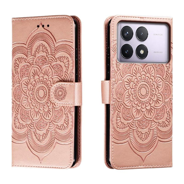 For Xiaomi Redmi K70 Sun Mandala Embossing Pattern Phone Leather Case(Rose Gold)