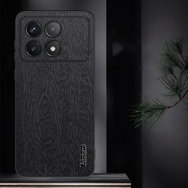 For Xiaomi Redmi K70 Tree Bark Leather Shockproof Phone Case(Black)