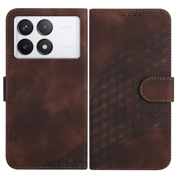 For Xiaomi Redmi K70 YX0060 Elephant Head Embossed Phone Leather Case with Lanyard(Coffee)