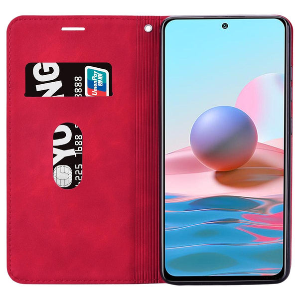 For Xiaomi Redmi Note 10 4G Frosted Business Magnetic Horizontal Flip PU Leather Case with Holder & Card Slot & Lanyard(Red)