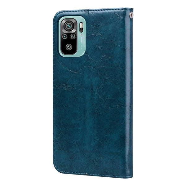 For Xiaomi Redmi Note 10 Business Style Oil Wax Texture Horizontal Flip Leather Case with Holder & Card Slots & Wallet(Blue)