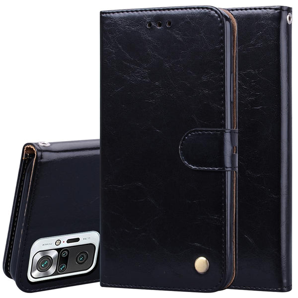 For Xiaomi Redmi Note 10 Pro Business Style Oil Wax Texture Horizontal Flip Leather Case with Holder & Card Slots & Wallet(Black)