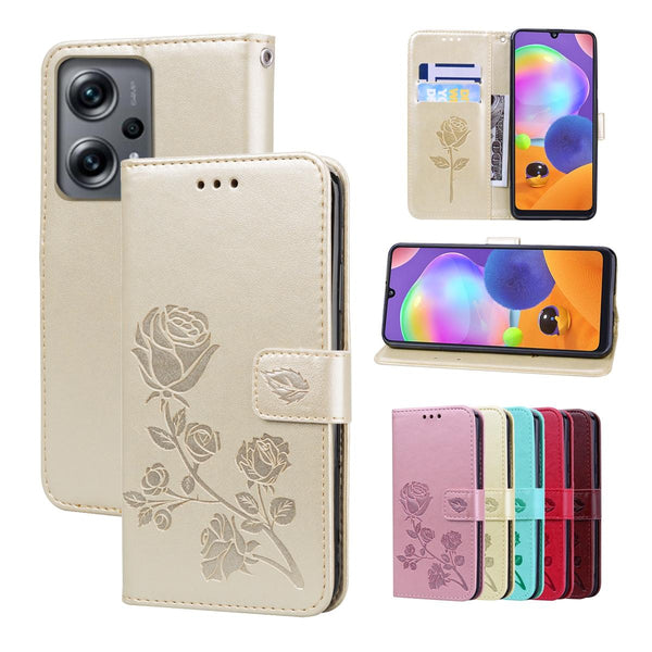 For Xiaomi Redmi Note 11T Pro 5G Rose Embossed Flip PU Leather Phone Case(Gold)