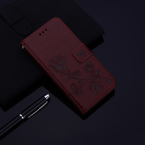 For Xiaomi Redmi Note 12 4G Global Rose Embossed Flip PU Leather Phone Case(Brown)