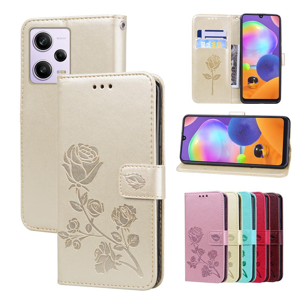 For Xiaomi Redmi Note 12 4G Global Rose Embossed Flip PU Leather Phone Case(Gold)