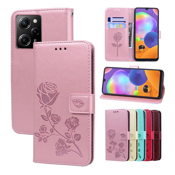 For Xiaomi Redmi Note 12 Pro Speed/Poco X5 Pro 5G Rose Embossed Flip PU Leather Phone Case(Rose Gold)