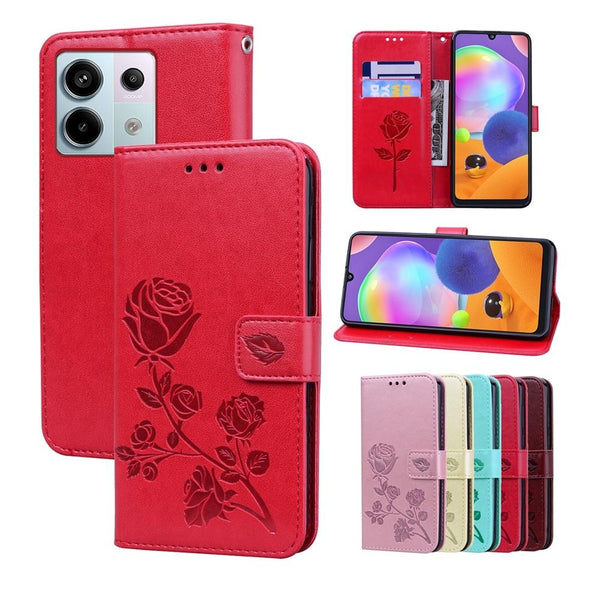 For Xiaomi Redmi Note 13 Pro 4G Rose Embossed Flip PU Leather Phone Case(Red)