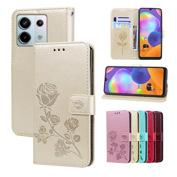 For Xiaomi Redmi Note 13 Pro 5G / Poco X6 Rose Embossed Flip PU Leather Phone Case(Gold)