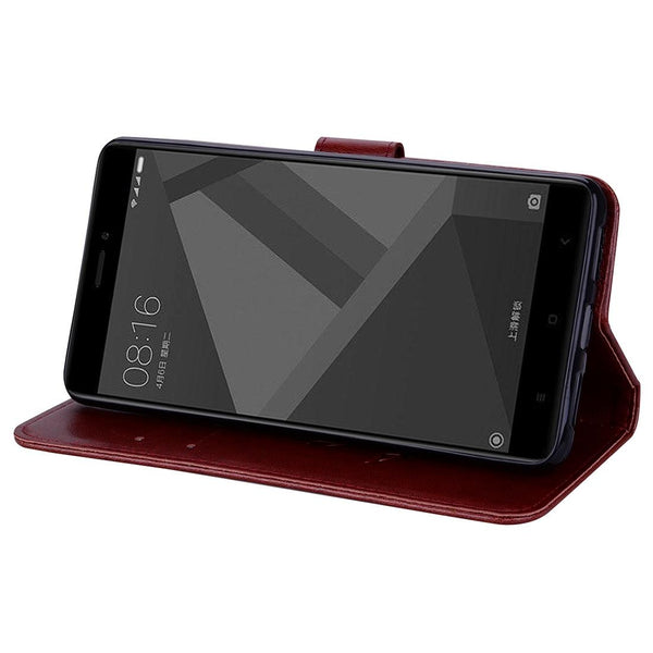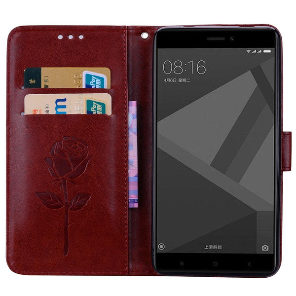 For Xiaomi Redmi Note 4X Roses Pressed Flowers Pattern Flip Leather Case with Holder & Card Slots & Wallet(Brown)
