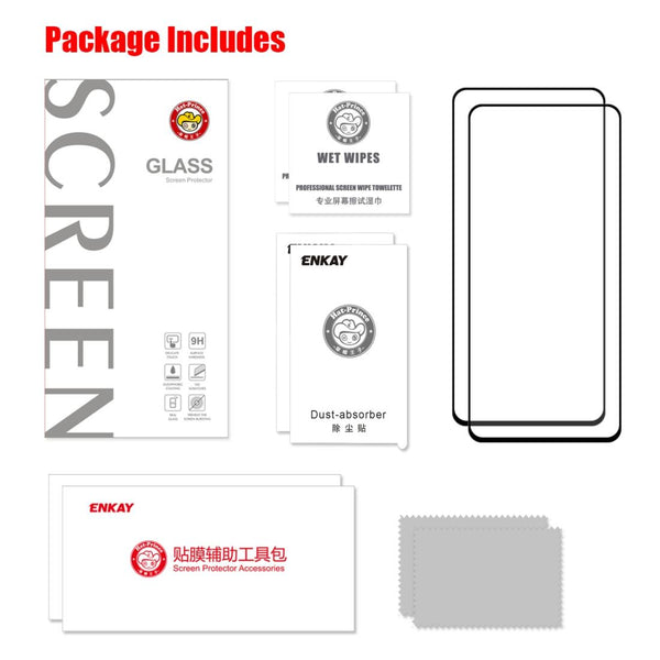 For Xiaomi Redmi Note 9 2 PCS ENKAY Hat-Prince Full Glue 0.26mm 9H 2.5D Tempered Glass Full Coverage Film