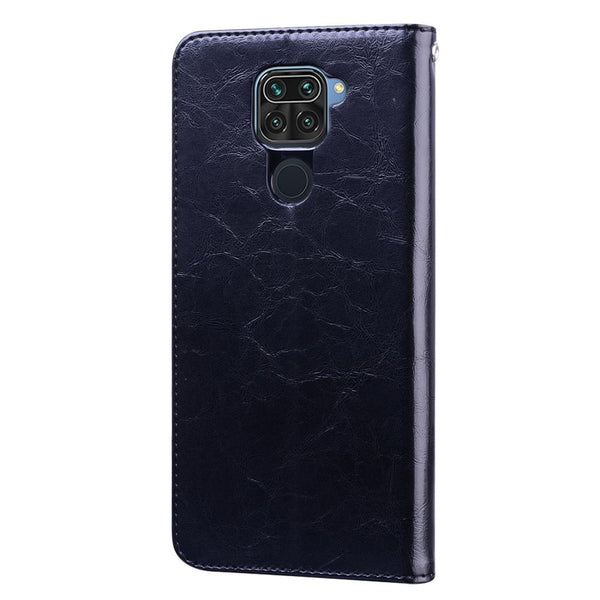For Xiaomi Redmi Note 9 Business Style Oil Wax Texture Horizontal Flip Leather Case with Holder & Card Slots & Wallet(Black)