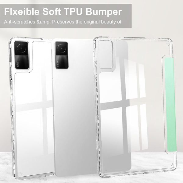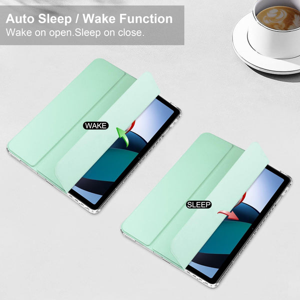For Xiaomi Redmi Pad 10.6 3-Fold Clear Back Cover Leather Smart Tablet Case(Mint Green)