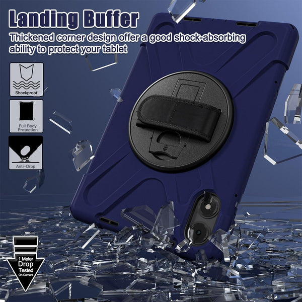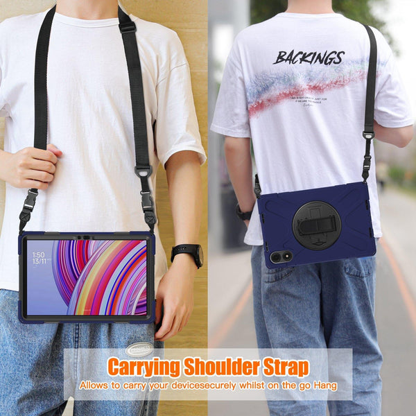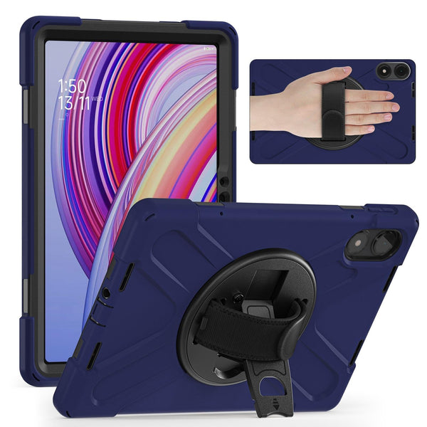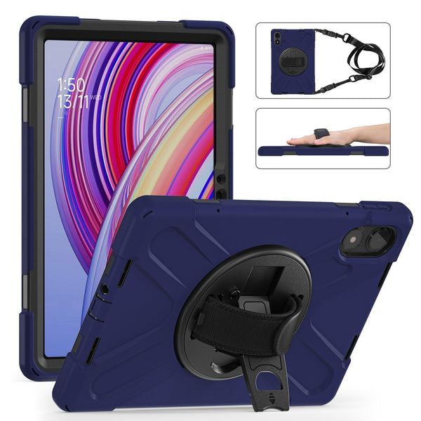 For Xiaomi Redmi Pad Pro 12.1 Rotatable Holder Silicone Hybrid PC Tablet Case with Shoulder Strap(Navy Blue)