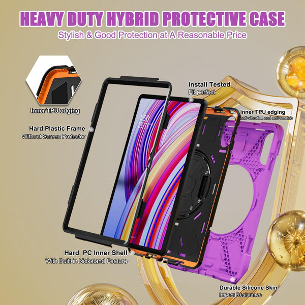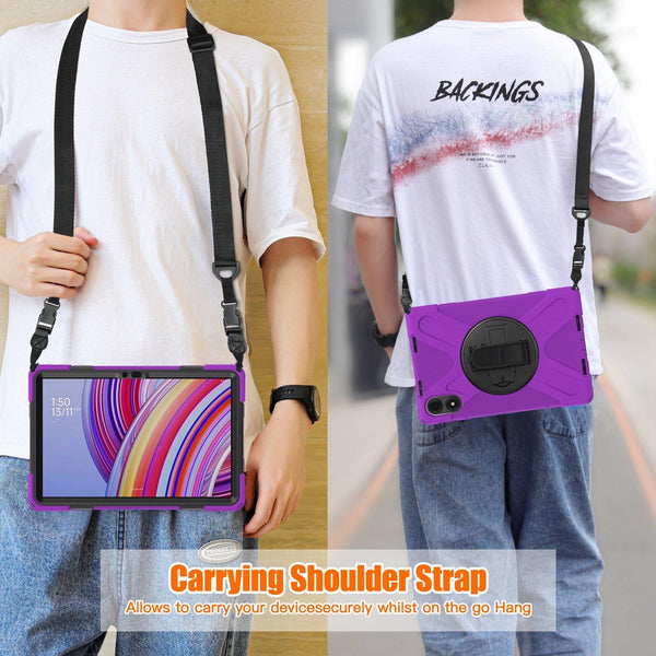 For Xiaomi Redmi Pad Pro 12.1 Rotatable Holder Silicone Hybrid PC Tablet Case with Shoulder Strap(Purple)