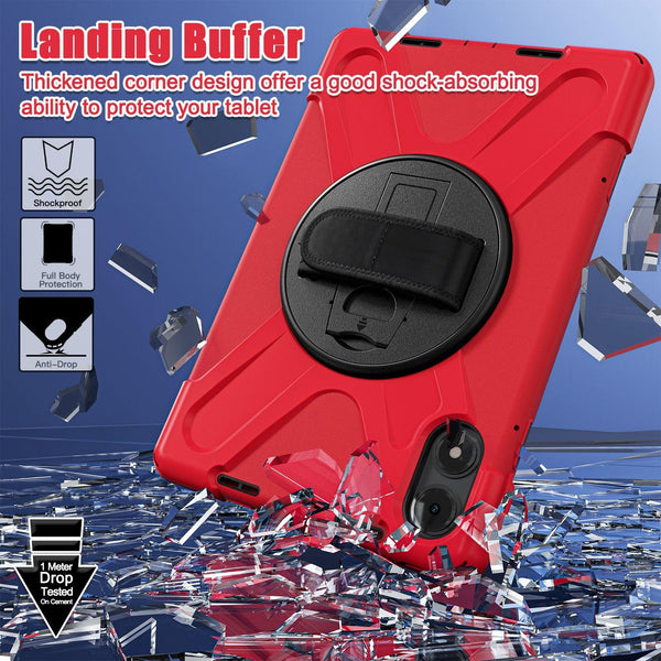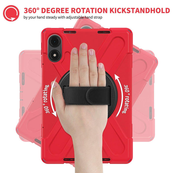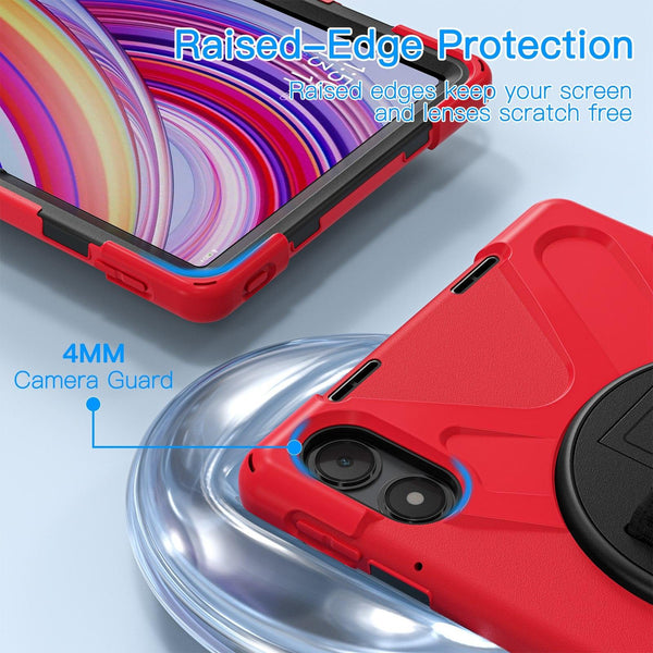 For Xiaomi Redmi Pad Pro 12.1 Rotatable Holder Silicone Hybrid PC Tablet Case with Shoulder Strap(Red)