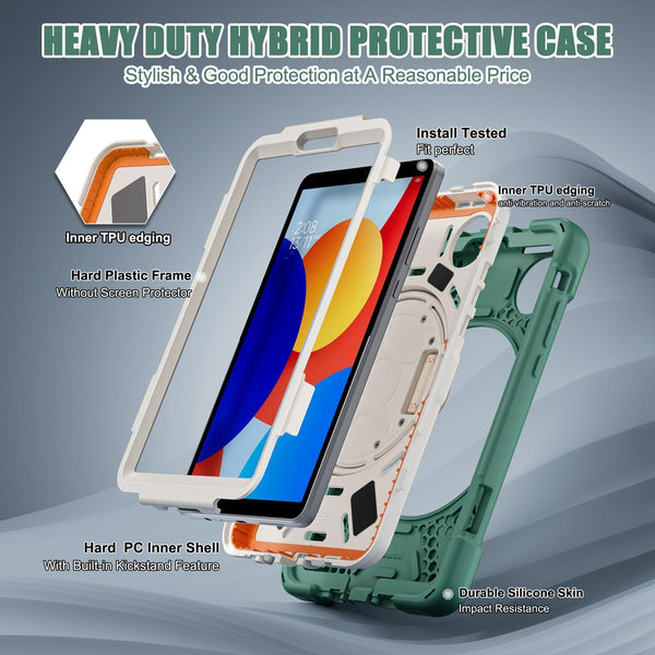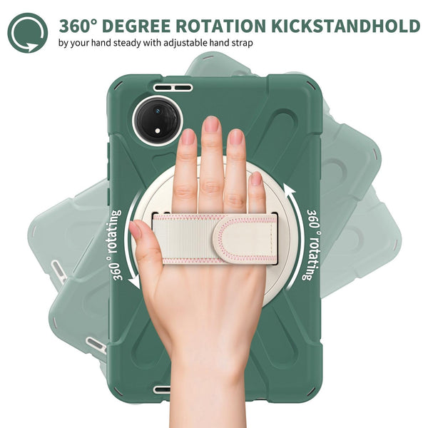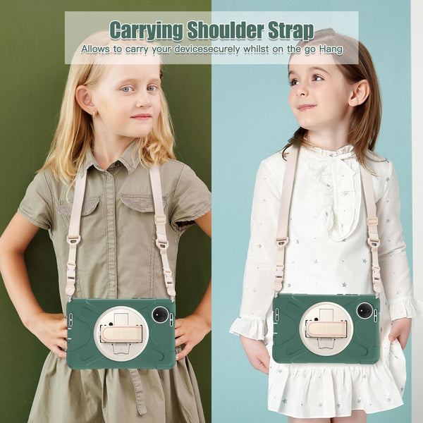 For Xiaomi Redmi Pad SE 8.7 Rotatable Holder Silicone Hybrid PC Tablet Case with Shoulder Strap(Emreald Green)