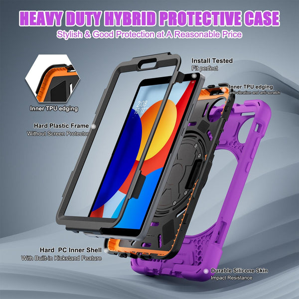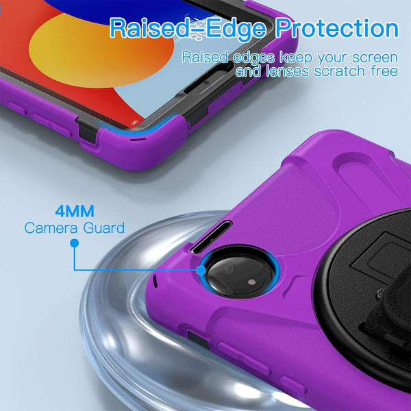 For Xiaomi Redmi Pad SE 8.7 Rotatable Holder Silicone Hybrid PC Tablet Case with Shoulder Strap(Purple)