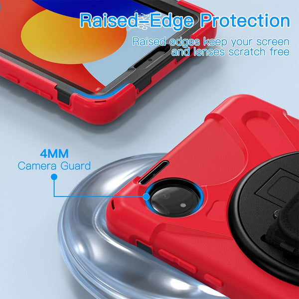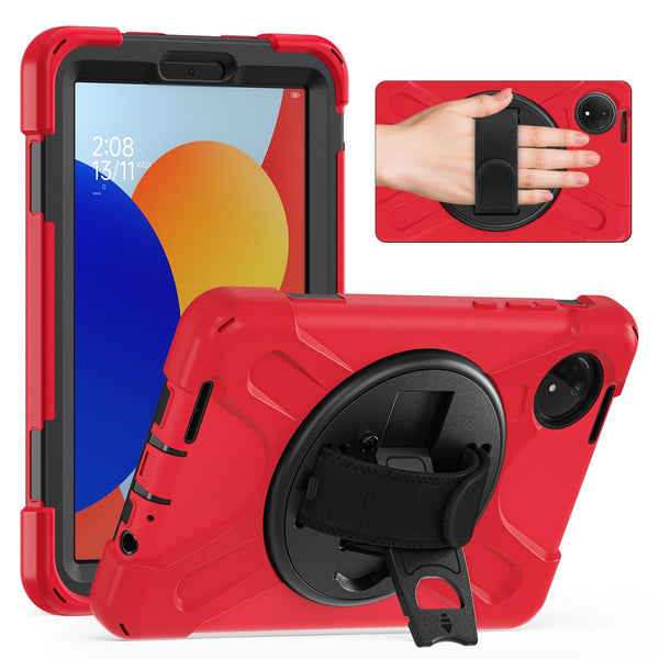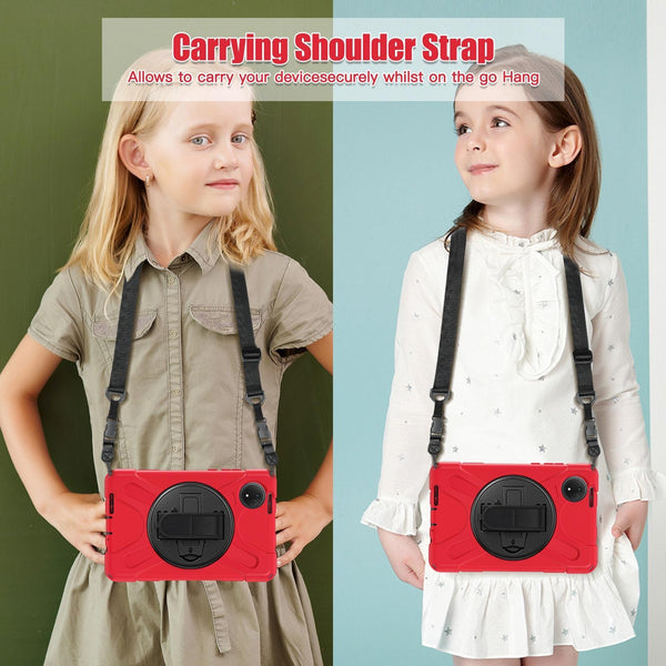 For Xiaomi Redmi Pad SE 8.7 Rotatable Holder Silicone Hybrid PC Tablet Case with Shoulder Strap(Red)