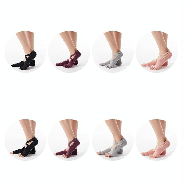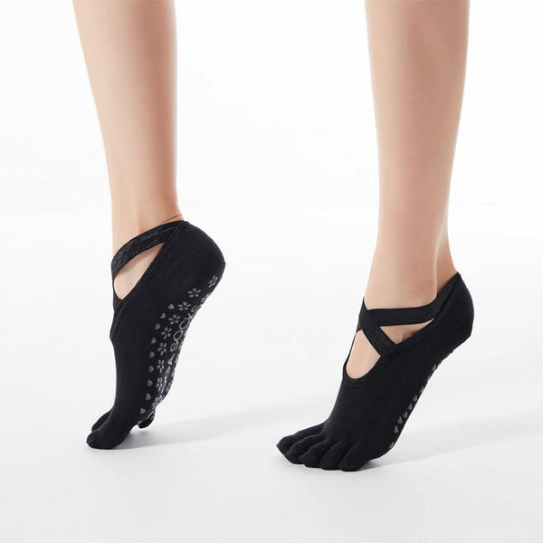 1 Pair Five-Finger Cross-Lace Yoga Cotton Socks Fashion Non-Slip Sports Dance Socks, Size: One Size(Full Toe (Black))