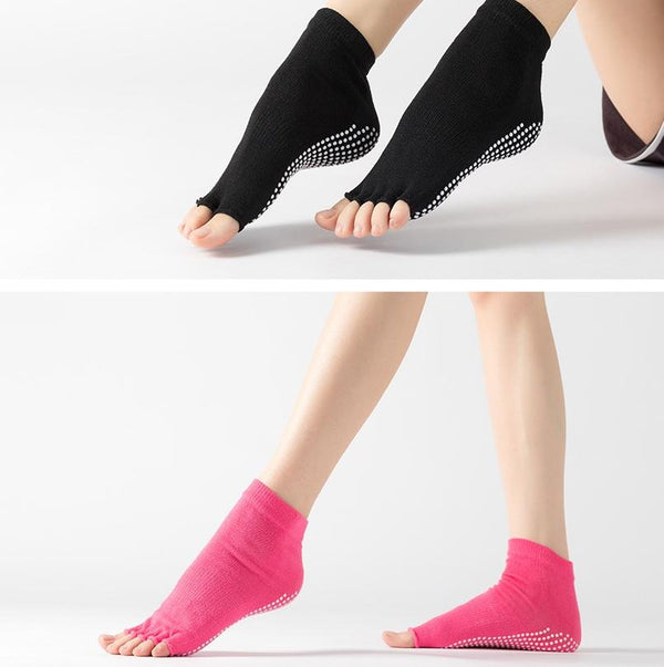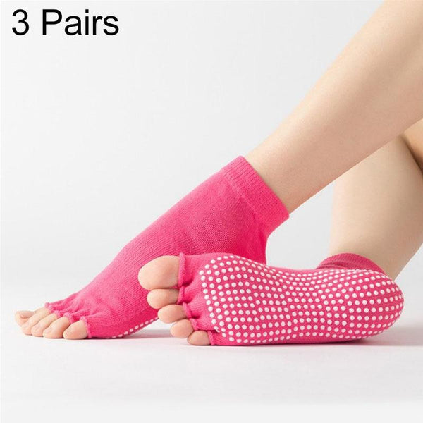 3 Pair Open-Toe Yoga Socks Indoor Sports Non-Slip Five-Finger Dance Socks, Size: One Size(Pure Rose Red)