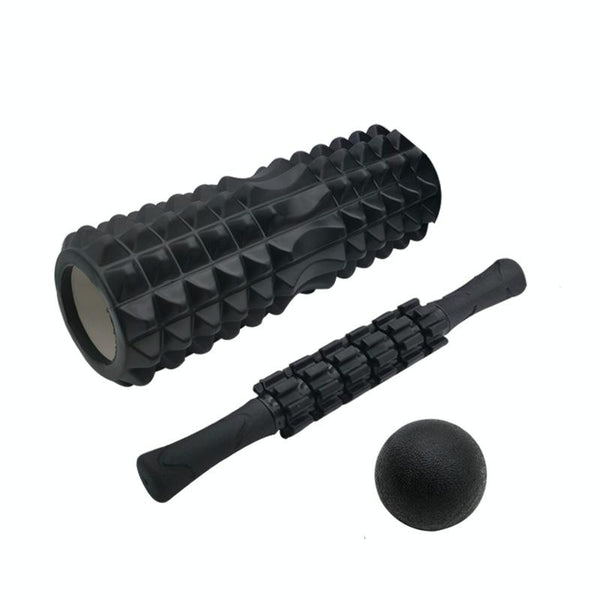 3pcs/set Crescent Hollow Foam Roller Yoga Column Set Fitness Muscle Relaxation Massager Set(33cm Black)