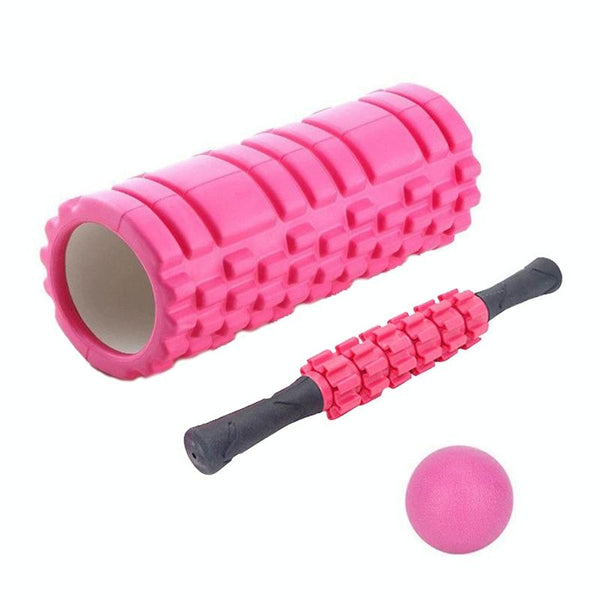 45cm 3pcs/set EVA Hollow Foam Roller Muscle Relaxation Roller Yoga Column Set Fitness Equipment(Pink)