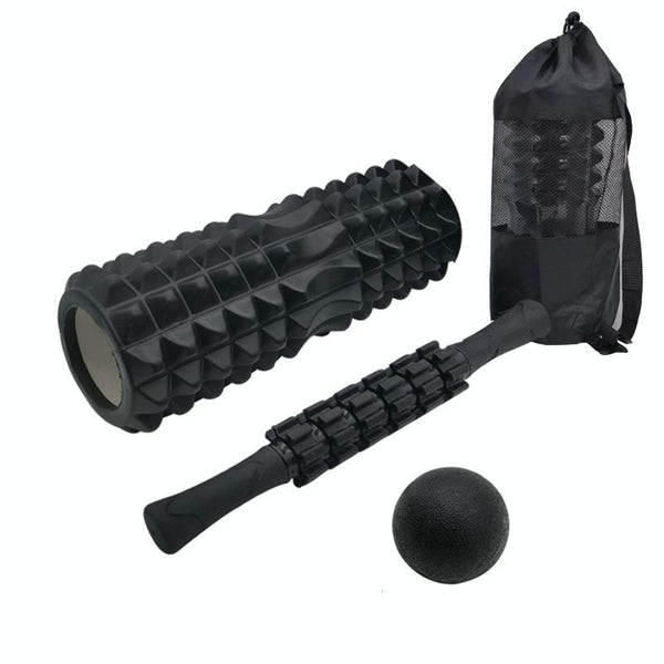 4pcs/set Crescent Hollow Foam Roller Yoga Column Set Fitness Muscle Relaxation Massager Set(45cm Black)